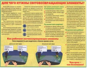 По статистике наезд на пешехода – один из самых распространенных видов дорожно-транспортных происшествий. Основная доля наездов со смертельным исходом приходится на тёмное время суток, когда водитель не в состоянии увидеть вышедших на проезжую часть людей. Световозвращающие элементы повышают видимость пешеходов на неосвещенной дороге и значительно снижают риск возникновения дорожно-транспортных происшествий с их участием.